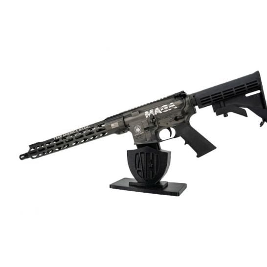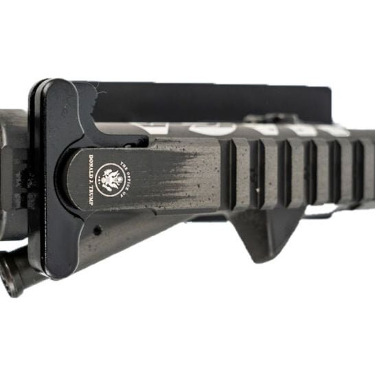 Andro Corp Trump Take America Back 5.56×45 AR-15 Rifle. 4150 CMV melonite barrel, optics ready rail, M4 feed ramp, 7075 forged lower, and Trump MAGA finish.