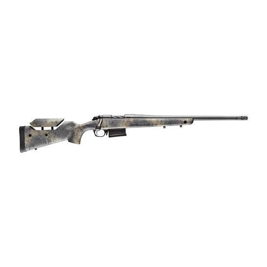 The Wilderness Series tackles the need for rifles that can withstand the rugged and unforgiving wilderness while blending into those very same elements – hence Bergara’s hand-painted camouflage stocks with added webbing for increased texture and grip. All Wilderness Series barreled actions feature Sniper Grey Cerakote finishes for advanced protection in extremely harsh weather. Featuring a Terrain molded stock with mini-chassis, this rifle is also outfitted with a Bergara Performance Trigger and a 5 round (3 round: 6.5 PRC) AICS style detachable magazine. The world-renowned (#5.5) Bergara barrel is finished in Sniper Grey Cerakote and features a seamless, omnidirectional, and multi-ported muzzle brake that will reduce felt recoil by up to 35 percent. The Terrain is complemented by our super-smooth B-14 Action, which is a two-lug system with a sliding plate extractor and a coned bolt nose and breech to ensure smooth feeding and extraction of the cartridge. It has been factory drilled and tapped to fit Remington 700 style rings and bases and includes QD flush cups in the stock to allow for easy attachment and detachment of slings.