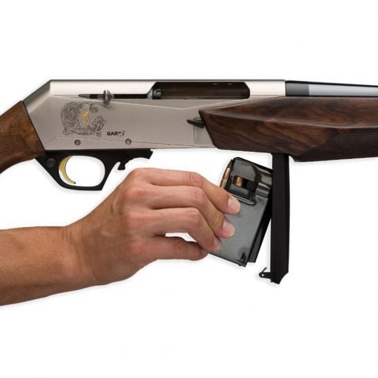 Third generation. Originally designed by Browning family member Bruce Browning, the original civilian BAR was the rifle that set the standard for autoloading hunting rifles. The latest MK 3 version builds on the previous iterations with completely new styling, fine oil finish walnut, a precision alloy receiver and a hammer-forged barrel. The BAR features accuracy and performance that will make autoloading enthusiasts out of the most skeptical riflemen. Classic in looks and contemporary in performance. The BAR MK 3 is the hunting rifle that sets the bar for every other autoloader on the planet with accuracy and speed – and a caliber selection – that is not matched by any other hunting autoloader. The MK 3 is available in the most popular hunting calibers from whitetail hunter’s favorite 243 Winchester to the hard-hitting 300 Winchester Magnum. Cartridges are fed from a detachable box magazine, so be sure to keep a spare in your pocket for fast reloads. Autoloader with traditional walnut stock, polished blued steel barrel, engraved alloy receiver, Inflex recoil pad.