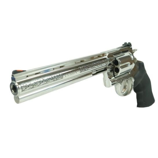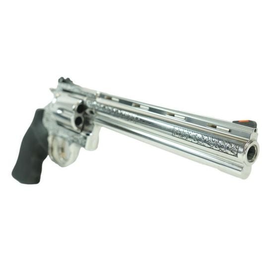 - With an 8 inches barrel and a 6-round capacity, this stainless steel framed handgun delivers both enhanced accuracy and a striking appearance, perfect for high-performance shooting