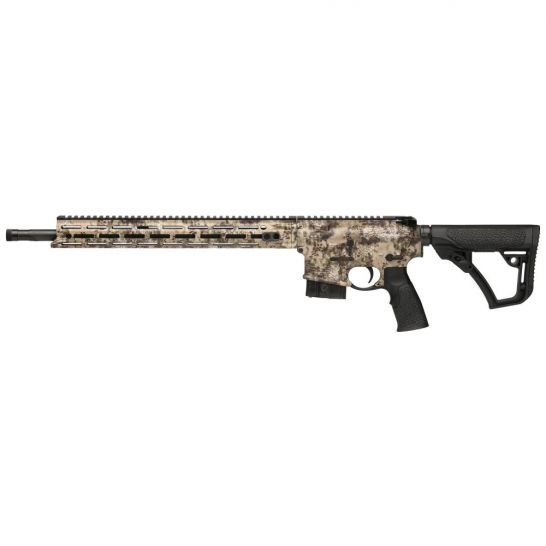 Accurate, tough, and hard-hitting, the Daniel Defense line of Ambush hunting rifles takes the best aspects of Daniel’s proven designs and tailor fit them to the modern sportsman. Built around an 18″ cold hammer forged barrel, the Ambush offers precision and accuracy with a wide variety of projectiles. Shielding the barrel and mid-length gas system is the MFR 15. 0 free-floating handguard. With a continuous picatinny rail on top and M-LOK attachment on the sides and bottom, there is plenty of room for any accessory that your hunt may require. The barrel is threaded in 1/2×28 TPI and capped with a knurled thread protector which can be easily removed should you want to attach a suppressor or other muzzle device. The Ambush comes from the factory with a Geissele Super Semi-Automatic, 2-stage trigger and an ambidextrous safety selector. The new independently ambi GRIP-N-RIP charging handle accommodates left and right handed shooters and is engineered for suppressed fire, with anti-gas features that redirect gas flow upward and away from the face and operator. The platform is finished off in a vivid hydro-dipped Kryptek Highlander camo pattern. The rifle is finished off with the rugged and comfortable Daniel Defense Buttstock and pistol grip.