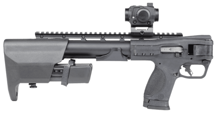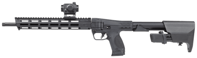 The New M&P FPC® showcases our brand new, compact, folding design. The in-stock magazine storage with a quick-release latch makes reloading convenient and quick. The M&P FPC® accepts any M&P® full-size or compact 9mm magazine. The M&P FPC® also comes with a carrying bag with additional storage and firearm securing straps. With a slim and compact design, this Pistol Cailber Carbine (PCC) can be stowed in small places making it very accessible. The ability to fold from the side makes sure that mounted optics aren’t disturbed, and it’s easy to deploy when needed. Magazine compatibility with the M&P® M2.0® platform gives this PCC a robust ecosystem available in the market today and rewards existing M&P® owners.