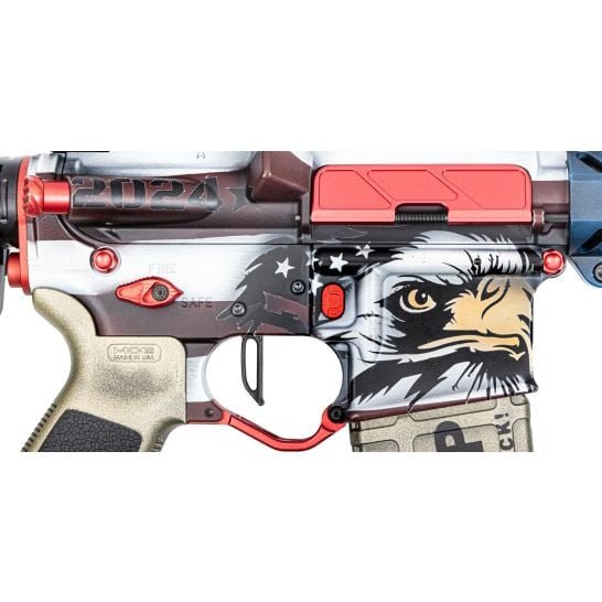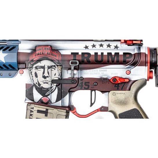 PSA Custom 16″ Mid-length Pencil 5.56 NATO 1/7 Nitride 15″ LtWt Mlok Rifle, 3.5 flat FCG – Trump