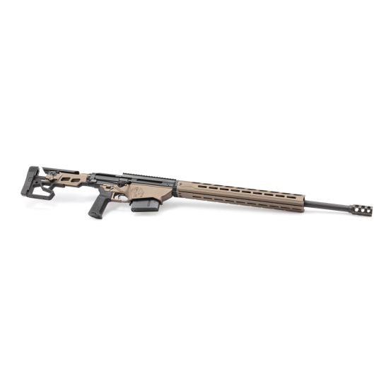 The Ruger Precision Rifle is built to deliver long-range accuracy and unmatched adaptability, making it a top choice for precision shooters. Its heavy-contour barrel, measuring .850 inches at the muzzle, enhances stability and heat resistance during sustained fire, while the hybrid muzzle brake reduces recoil and muzzle rise for faster follow-up shots. The patented multi-magazine interface offers impressive versatility, functioning with AICS and M110, SR-25, DPMS and Magpul-style magazines, along with compatibility with some M14 magazines. The Ruger Marksman adjustable trigger allows for external adjustment to achieve the shooter’s preferred pull weight, enhancing precision and control. The rifle’s fully adjustable buttstock is engineered for intuitive customization, allowing adjustments to length of pull, cheek rest height, horizontal positioning and buttpad height, ensuring a perfect fit for any shooter or shooting style. The cold hammer-forged, chrome-moly steel barrel features 5R rifling with minimum bore and groove dimensions, delivering exceptional accuracy through consistent bullet stabilization. Surrounding the barrel, the 15 inches aluminum free-float handguard is black hard-coat anodized and equipped with Magpul M-LOK slots on all four sides for flexible accessory mounting. Further enhancing its versatility, the rifle includes an ambidextrous manual safety and a 20 MOA Picatinny rail secured with #8-40 screws for solid optics mounting. The Magpul MOE-K2-XL grip offers enhanced ergonomics and includes optional storage cores for stowing small gear or tools. For added convenience, the bolt disassembly tool is cleverly stored inside the billet aluminum bolt shroud, simplifying striker channel cleaning in the field. The front of the magazine well is contoured for a positive grip when bracing against barricades or supports. Complete with two 10-round Magpul PMAG magazines, the Ruger Precision Rifle delivers the performance, flexibility and innovation demanded by today’s precision shooters.