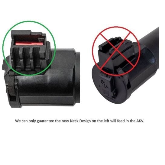 IMPORTANT: The “Stizon” AK-V is designed to function with the newer-style Stizon magazine feed lips. Please refer to the image above for reference—the feed ramps circled in green are compatible. We cannot guarantee proper function with the feed ramp style circled in red.