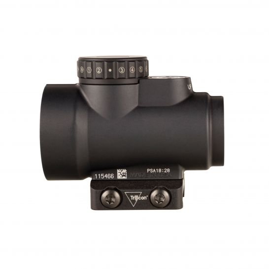 The Trijicon Miniature Rifle Optic (MRO) is a reflex-style, sealed sight intended for use on rifles, carbines, and shotguns to provide fast target acquisition. It is designed to be used with both eyes open, providing the operator with maximum situational awareness. The large aperture and tapered light path maximizes the viewing area in such a small optic, allowing for fast target engagement – especially from non-standard shooting positions. It also features ambidextrous brightness controls, sub-flush adjusters, advanced lens coatings, and a fully sealed, waterproof, hard anodized forged 7075-T6 housing, making the MRO the ultimate mini reflex sight. The MRO HD is optimized for use with a magnifier, with a re-engineered objective lens to produce a refined 2.0 MOA center dot surrounded by a 68 MOA segmented circle reticle. The ambidextrous reticle and brightness control allows the user to choose between a full reticle or center dot only.