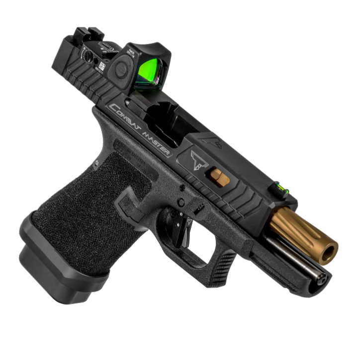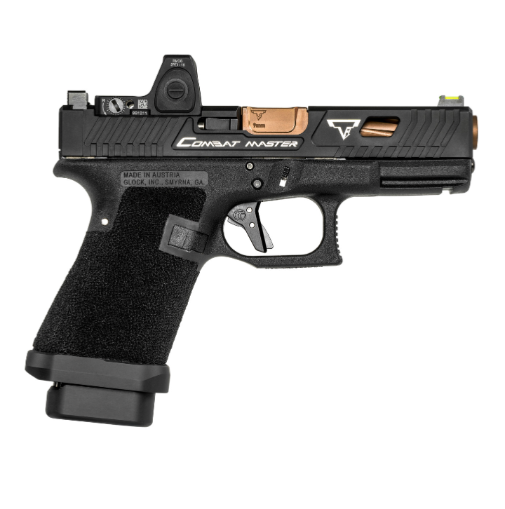 - TTI Custom Flat Black Tactical Finish Slide w/ ultra low Trijicon RMR/SRO Optic Cut